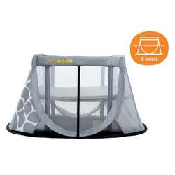 AeroMoov putni krevetić ima dvije razine: nisku i srednju razinu. Lakše dostupna srednja razina namijenjena je novorođenčadi do 2. mjeseca starosti. Ona smanjuje saginjanje kod podizanja bebe iz krevetića. Razina madraca lako se prilagođava. Kad dijete može uspravno sjediti ili teži više od 6 kg, vrijeme je da prijeđete na nižu razinu.