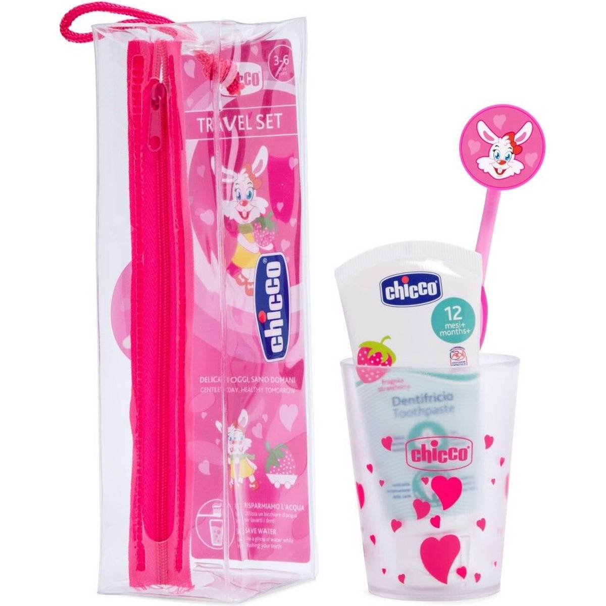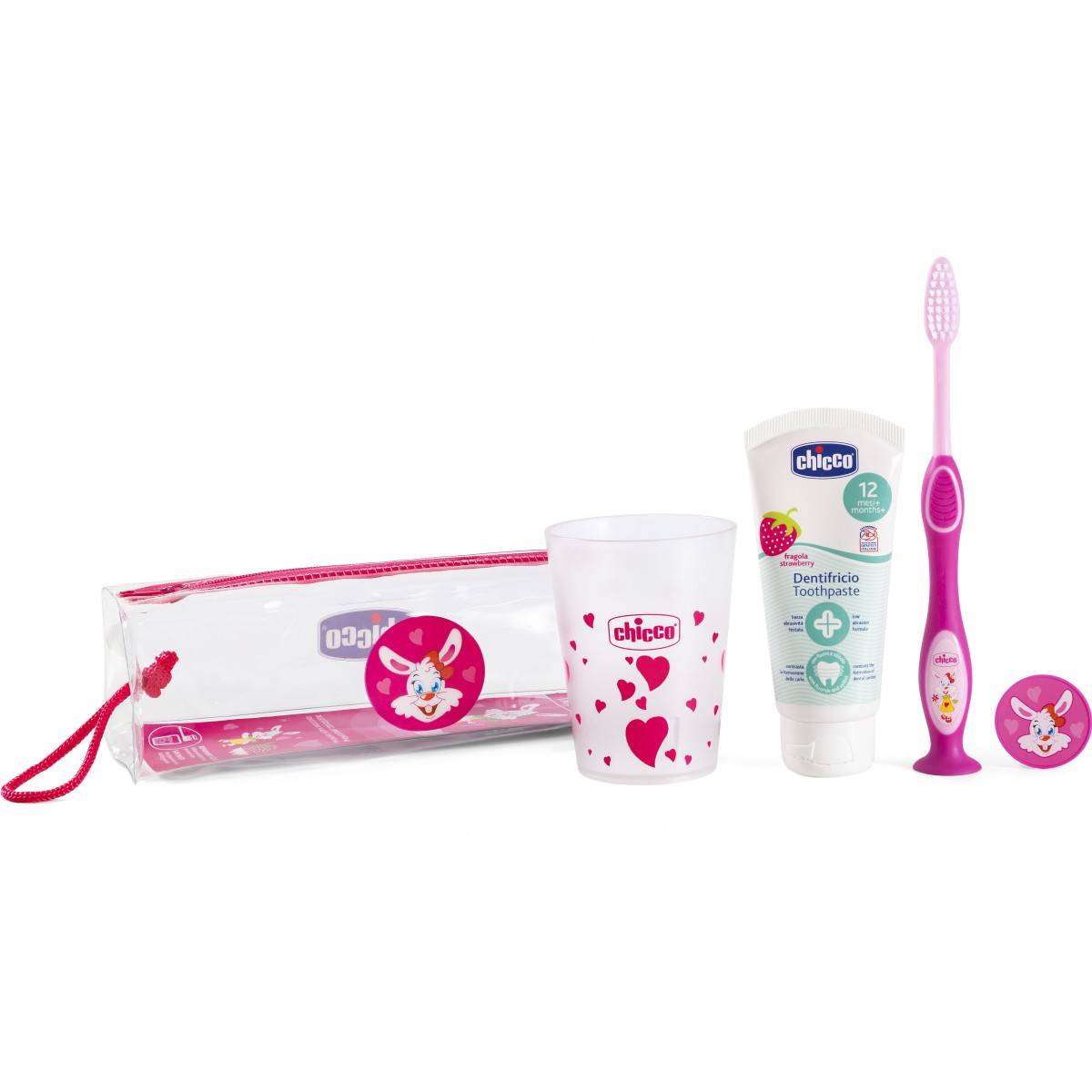 CHICCO zubna četkica set u torbici pink rose