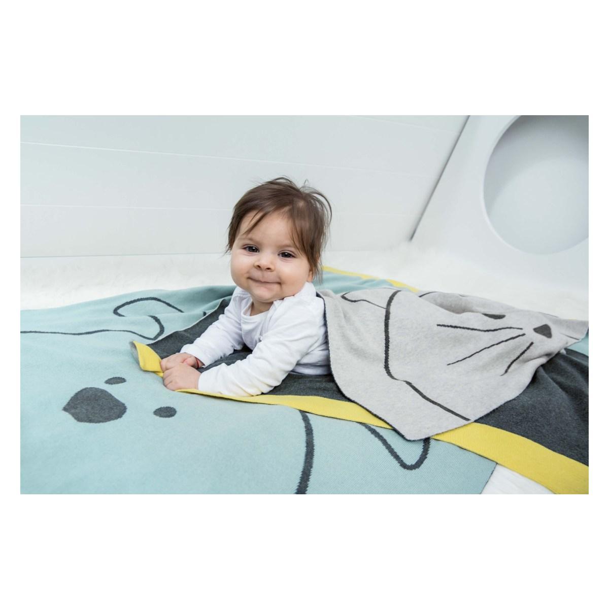 LÄSSIG dekica Gots GOTS, Little Chums Cat, 75 x 100 cm grey 1542005108