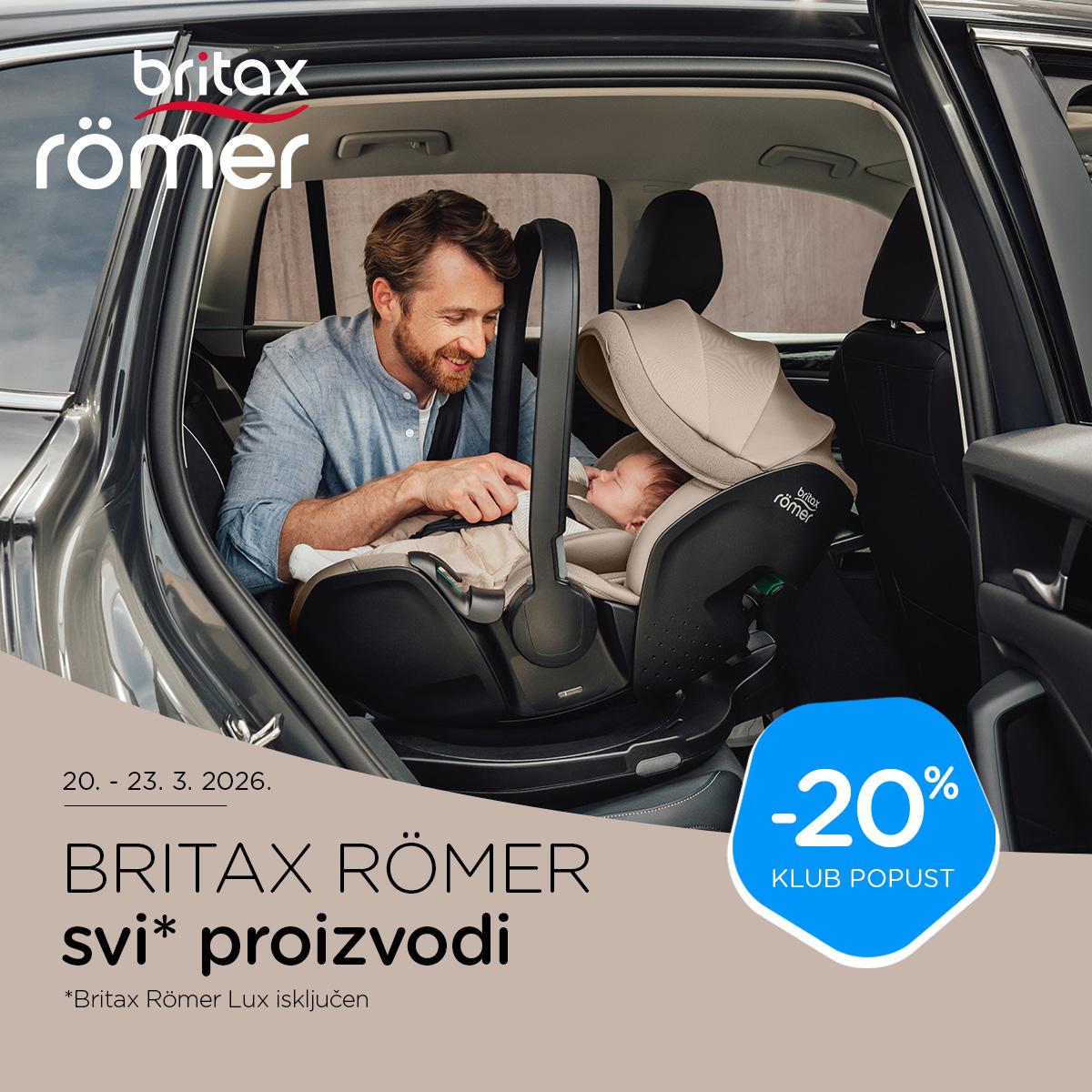 -20% na Britax Römer* asortiman po redovnim cijenama (*Britax Römer Lux isključen)